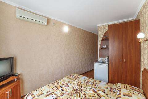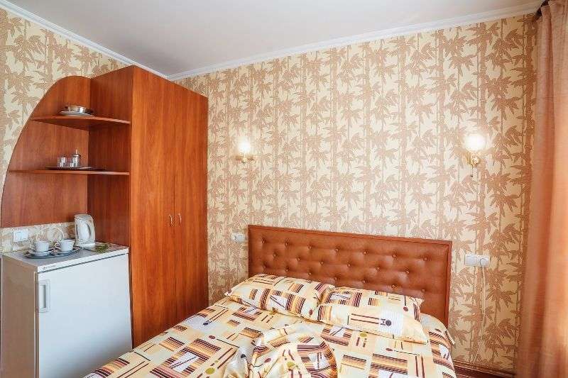двуспальная кровать, шкаф, стулья, прикроватные тумбочки, прихожая, вешалка, зеркало. Перед комнатой есть терраса, где можно посидеть. Вид из окна на парк. В комнате имеется эл чайник, мин. набор посуды, утюг.