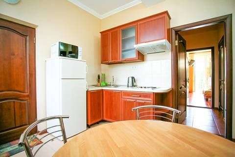 двуспальная кровать, диван-кровать, шкаф, стулья, прикроватные тумбочки, туалетный столик, стол, прихожая, вешалка, зеркало В номере имеется полноценная кухня, утюг, фен