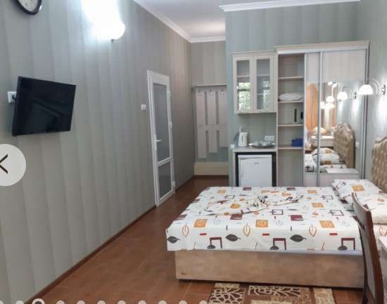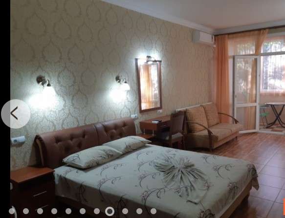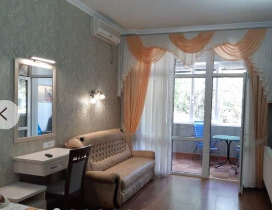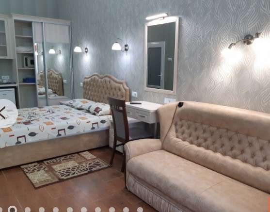 односпальная кровать, двуспальный диван-кровать, стулья, шкаф, прикроватные тумбочки, туалетный столик, зеркало, кухонный гарнитур, обеденная зона Данные помещения находятся на первом этаже с лоджией и на третьем этаже с балконом. Помещения имеют отдельный вход.