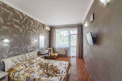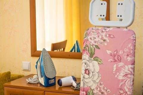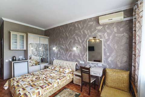 двуспальная кровать, кресло-кровать, шкаф, стулья, прикроватные тумбочки, туалетный столик, вешалка, зеркало. В номере имеется эл чайник, мин. набор посуды, утюг