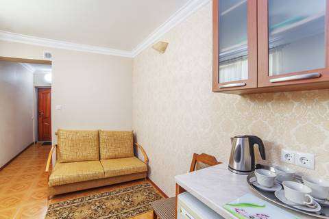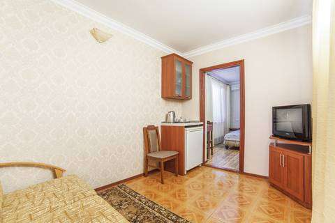 двуспальная кровать, диван-кровать, шкаф, стулья, прикроватные тумбочки, туалетный столик, вешалка, зеркало. В номере имеется эл чайник, мин. набор посуды, утюг